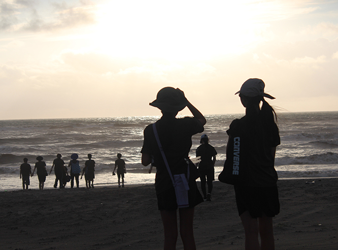 仲間とともに暗闇で静寂な山道を歩くことで、日中は感じることのなかった自然の美しさや怖さを体感する。