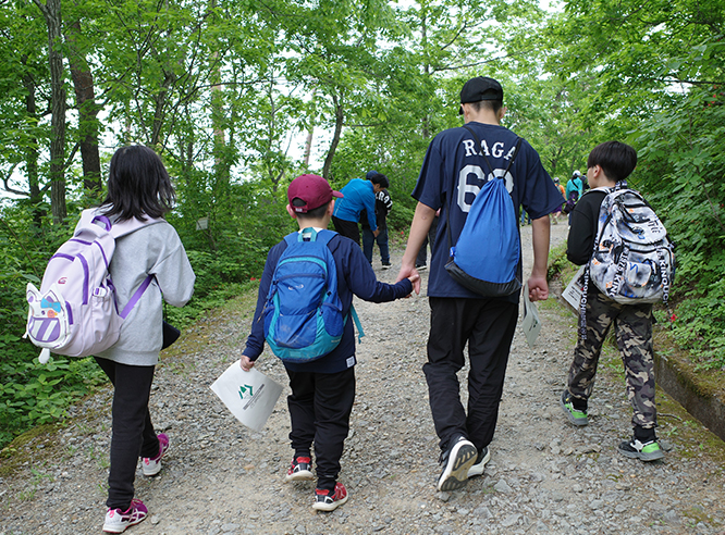 自然の中を歩き、植物や昆虫を観察したり景色を眺めたりしながら自然に親しむ。